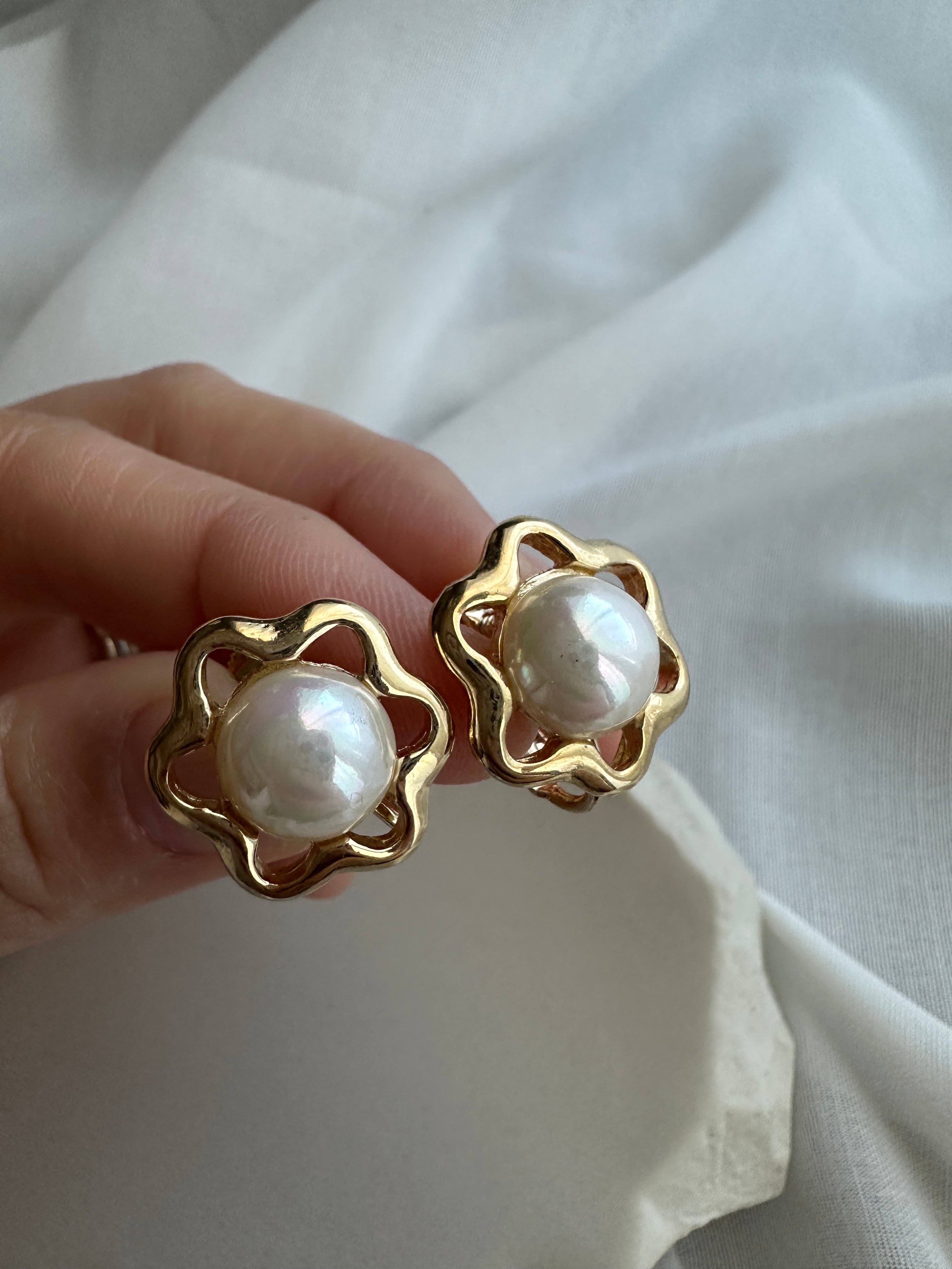 【クローバーのようなパールイヤリング】France vintage